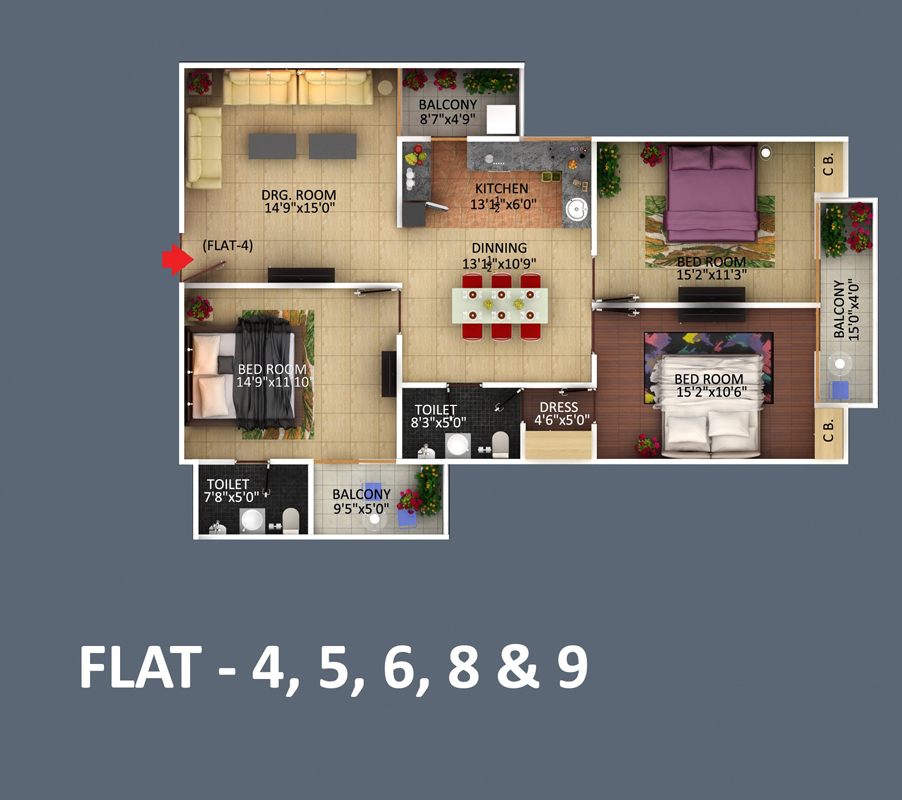 Vitrified tiles (ISI) in all the rooms
